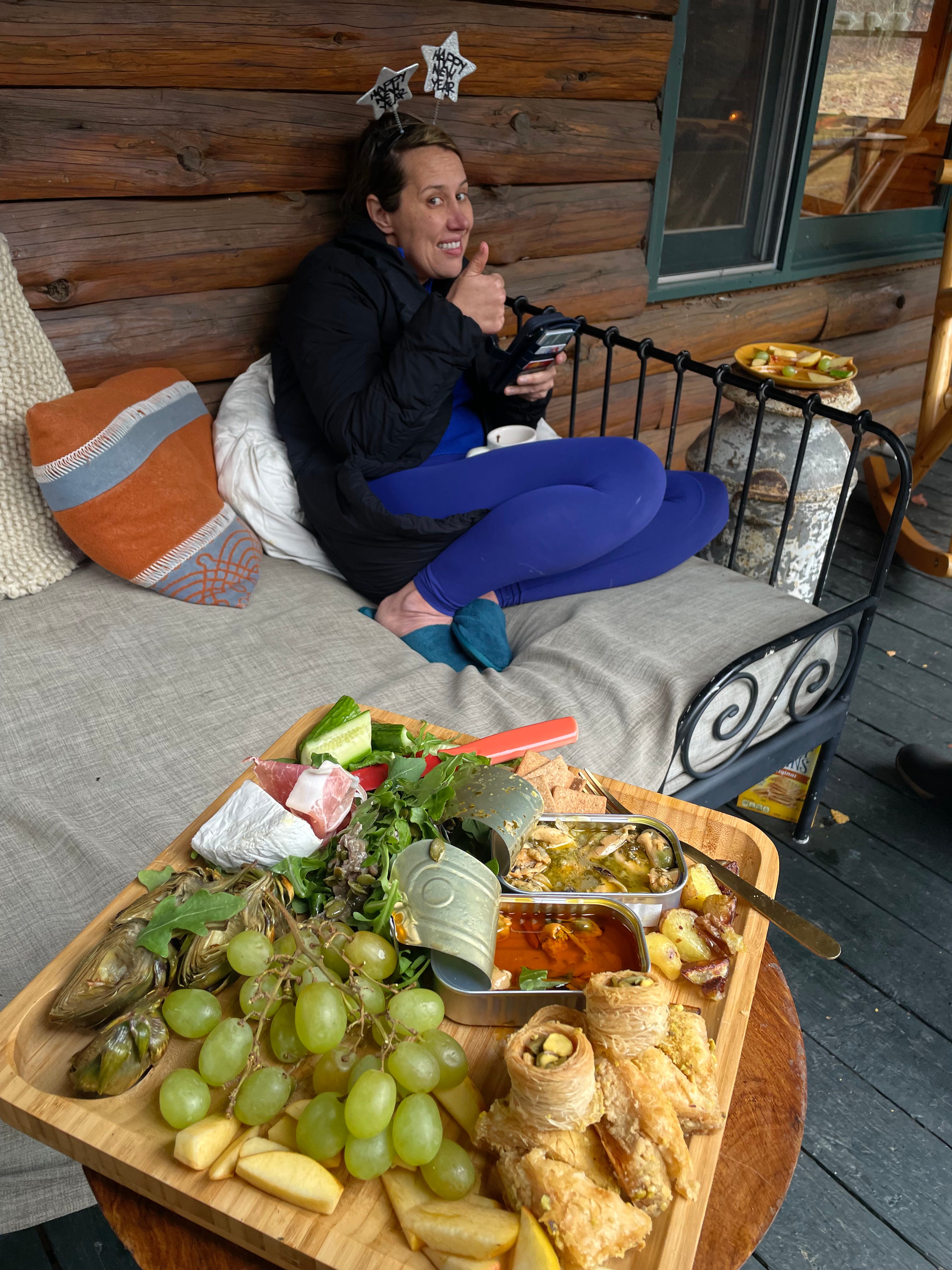 This is me after saying no to our neighborhood New Years Eve party, going to sleep for ten hours and waking up to have mulled wine and snack plates all the next day.